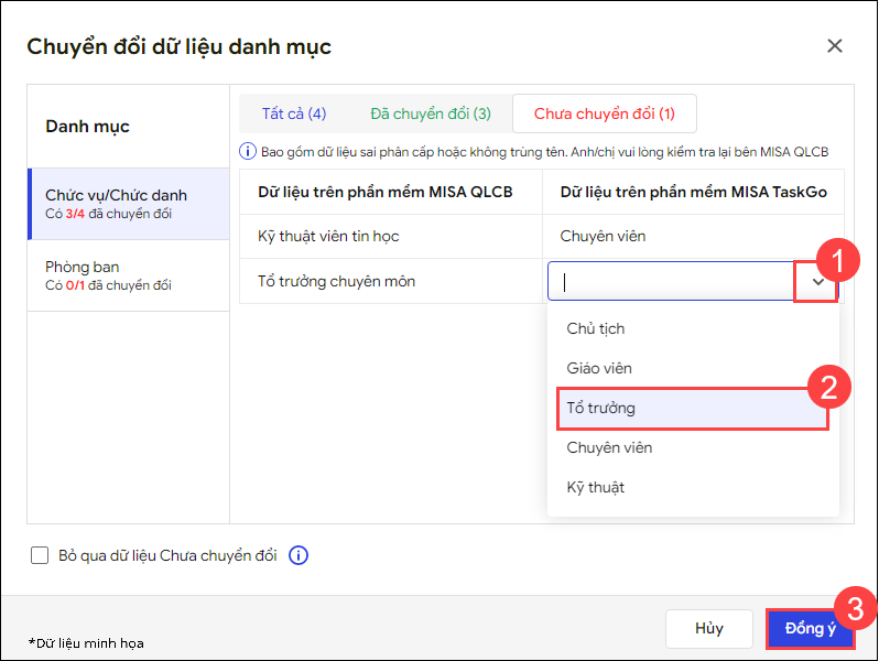- Phần mềm tự động đồng bộ thông tin danh mục chức vụ từ MISA QLCB sang MISA TaskGo.